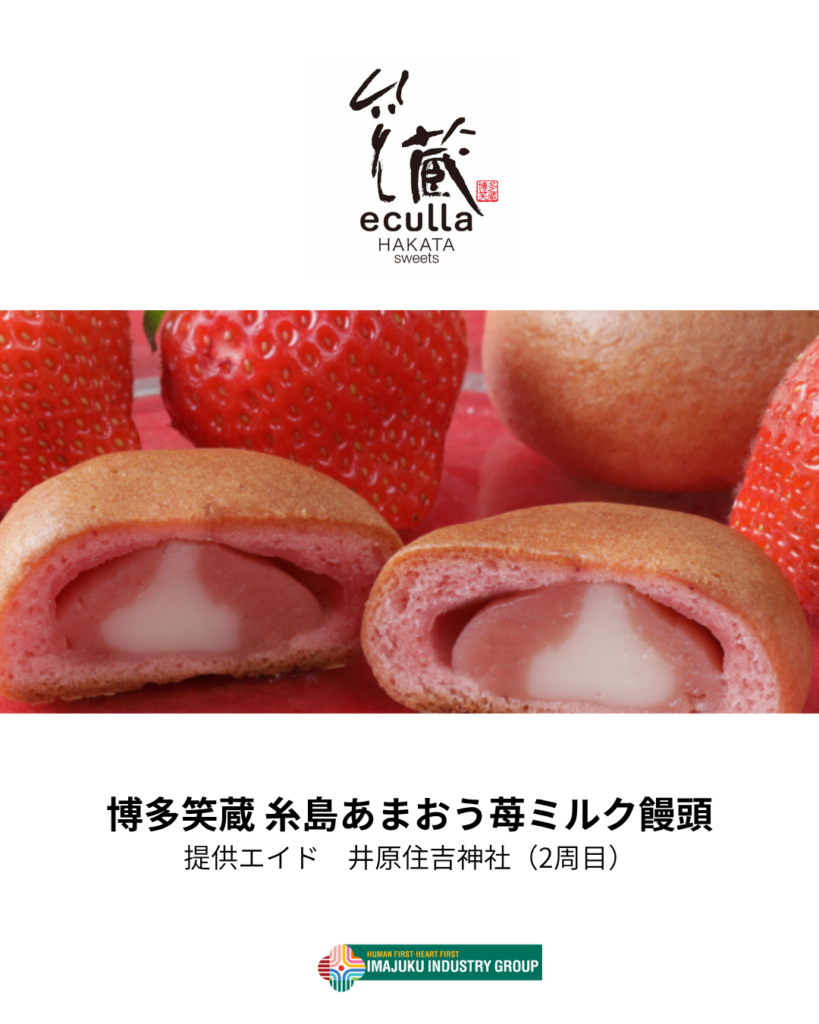 ▪️今宿産業株式会社様 協賛食品「博多笑蔵 糸島あまおう苺ミルク饅頭」