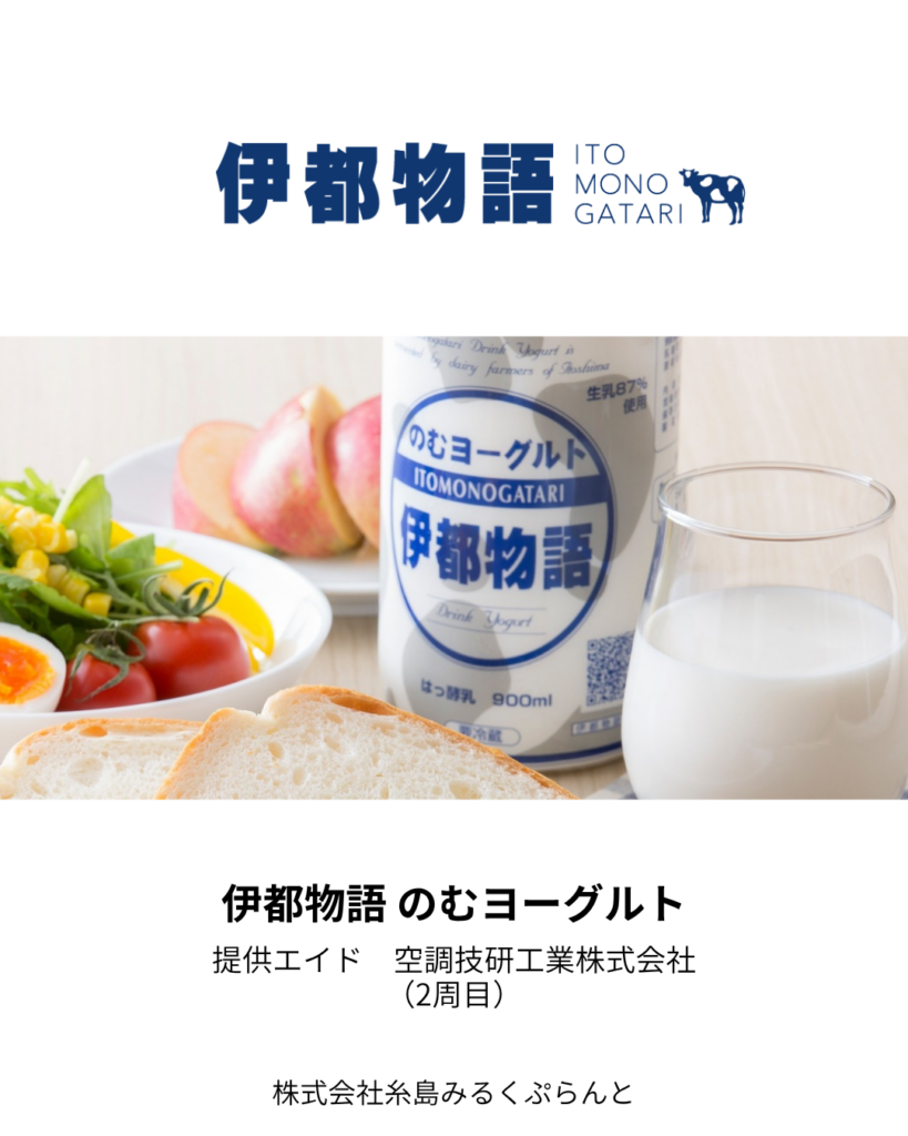 ▪️株式会社 糸島みるくぷらんと様 協賛食品「伊都物語 のむヨーグルト」